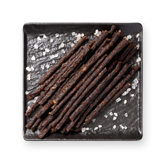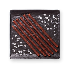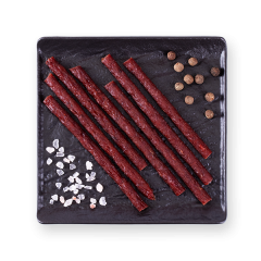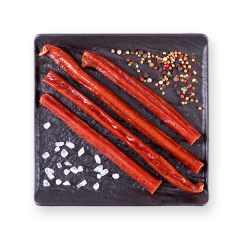Палички з м'яса яловичини та конини «Прованські» – це вишуканий м'ясний делікатес, виготовлений із добірного м'яса з додаванням ароматних прованських трав. Завдяки дбайливому сушінню і натуральним спеціям, палички мають насичений смак і приємний пряний аромат. Ідеально підходять як ситне перекушування або доповнення до пивних напоїв.