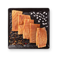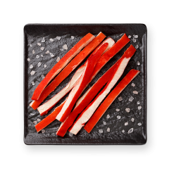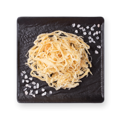 Кальмар солено-сушений зі смаком краба – вишукана закуска з ніжною текстурою кальмара та апетитним крабовим ароматом. Поєднання морської свіжості та пікантного смаку робить продукт чудовим вибором до пива, а також легким перекусом у дорозі чи вдома.