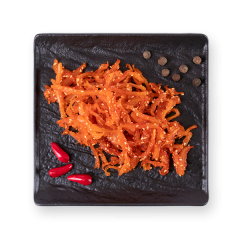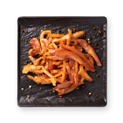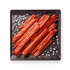 Тонкі в'ялено-сушені шматочки курячого філе з гострими спеціями. Пряна солодкувато-солона закуска, яка добре підійде до більшості сортів пива і не завадить повною мірою насолодитися смаком напою.