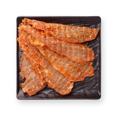 Стріпси з м'яса курки з сиром - ніжні в'ялені смужки курячого м'яса з плавленим сиром, що ідеально поєднуються з пивом світлих сортів. Легкі, але з насиченим смаком, ці стріпси стануть чудовою закускою для вечірок або затишних посиденьок. Збалансоване поєднання м'яса і сиру зробить ваше перекушування ще більш апетитним і приємним!