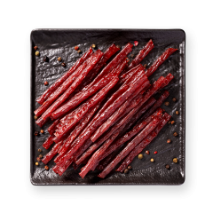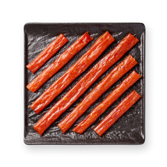 Джерки зі свинини зі смаком вишні – смачна м'ясна закуска до пива, яка є чудовою альтернативою звичайному копченому м'ясу та іншим закускам до пива. Наші джерки зі свинини зі смаком вишні – справжня насиченість смаку та аромату. Кожен шматочок м'яса просякнутий натуральними спеціями та вишневим ароматом, створюючи новий рівень смакових відчуттів.