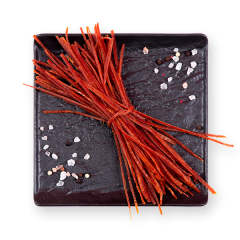В'ялене м'ясо риби та ікра, спресовані в тоненькі трубочки бордового кольору. Мають приємний аромат риби. Пружні за своєю структурою, є відмінною закускою до будь-яких сортам пива.