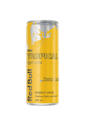 Енергетик Red Bull зі смаком тропічних фруктів - відмінна альтернатива класичним енергетичним напоям. Завдяки відсутності алкоголю в складі його можна вживати водіям, особливо тим, хто довго за кирмом і вже погано концентрується на дорозі, спортсменам або студентам в період підготовки до іспитів. Баночка Red Bull The Tropical Edition допоможе підбадьоритися, сконцентруватися, стати уважніше, і до всього цього в комплекті додається виразний цитрусовий смак і післясмак, що відрізняється від звичайних енергетичних напоїв, а також аромат тропічних фруктів.