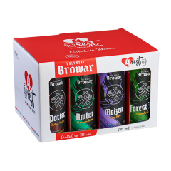Ящик на 12 баночок пива Volynski Browar В набір входять: Amber Premium Lager - Plato 12°/ Alcohol 4.4% / IBU 18 / 0,5L - 3 шт; Weizen Weizen Lager - Plato 12 / Alcohol 4.9% / IBU 12 / 0,5L - 3 шт; Forest IPA American Ale - Plato 15 / Alcohol 5.7 %/ IBU 45 / 0,5L - 3 шт; Porter Baltic Porter - Plato 15.5 / Alcohol 5.8 % / IBU 20 / 0,5L - 3 шт