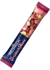 Шоколад Rose Millennium «Fruits&Nuts» рожевий молочний з мигдалем, фундуком, ягодами та родзинками, 35 г