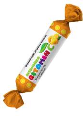 Склад: цукор білий, глюкоза кристалічна гідратна, апельсин сублімований мелений (1%), концентрат соку апельсина (1%), аскорбінова кислота (15+5 мг в 1 табл.), стеаринова кислота, ароматизатор "Апельсин", лимонна кислота.