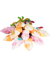 Забавні яскраві жувальні цукерки з фруктовими смаками приведуть в захват не тільки дітей. Навіть багато дорослих не відмовляться від таких ласощів. Оскільки цукерки мають максимально натуральний склад, в помірних кількостях вони нешкідливі і кількість калорій в таких солодощах менше, ніж в шоколаді.