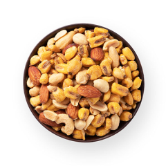 кукурудза з сіллю 33%, ядра бобів арахісу смажені 33%, горіх мигдаль 17%, горіх кеш'ю 17%, сіль кухонна, олія рослинна.