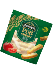 хлеб (пшеничная мука 44%, вода, соль поваренная, дрожжи прессованные), подсолнечное масло рафинированное дезодорированное, комплексные пищевые добавки Томаты по-домашнему (2.5% (сахар, соль, усилители вкуса и аромата 5'-инозинат натрия 2-замещенный), регулятор кислотности лимонная кислота, томат, антипикающий агент диоксид кремния, ароматизаторы), 2.5% (соль, мальтодекстрин, сахар, порошок томата, специи, порошок лука, усилители вкуса и аромата ( -замещенный, 5'рибонуклеотиды натрия 2-замещенные), ароматизатор, порошок чеснока, антиспекающие агенты (диоксид кремния, карбонат магния), масла растительные (оливковое и подсолнечное), регуляторы кислотности (лимонная кислота, яблочная кислота), крох антиоксидант экстракт розмарина))
