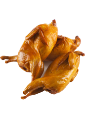 Перепела приготовлены по особому рецепту - на древесной щепе фруктовых деревьев, что особым образом отражается на вкусе и аромате нежного деликатесного мяса, эта изысканная закуска  отлично подходит к темным сортам пива.