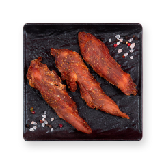 Стрипсы из мяса курицы «Барбекю» — нежные вяленые полоски куриного мяса с пикантной специей Барбекю, идеально сочетаются с пивом светлых сортов. Легкие, но с насыщенным вкусом, эти стрипсы станут отличной закуской для вечеринок или уютных посиделок.